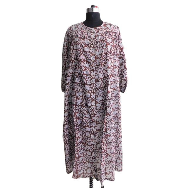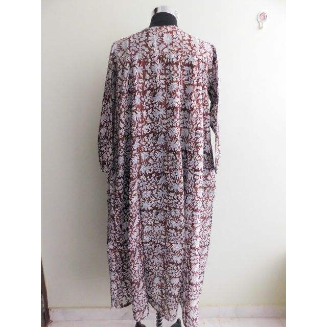 ชุดเดรสฮิปปี้โบฮีเมียน100% เนื้อนิ่มแท้ชุดนอนยาวถึงพื้นพิมพ์ลายดอกไม้ทำด้วยมือมีกระดุมลำลองฤดูร้อน