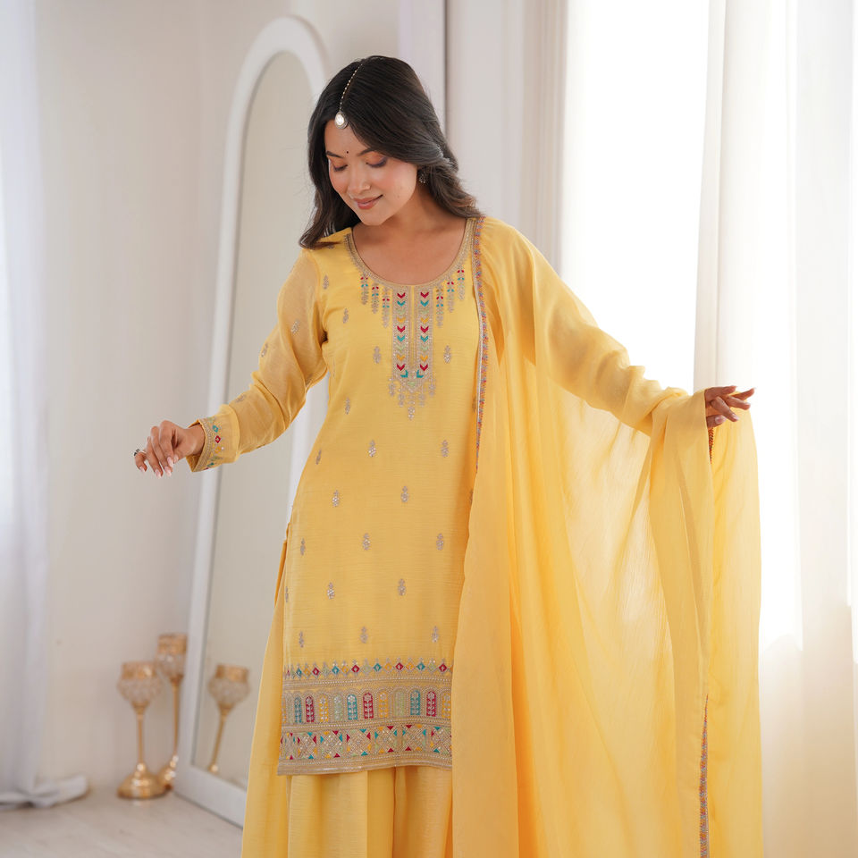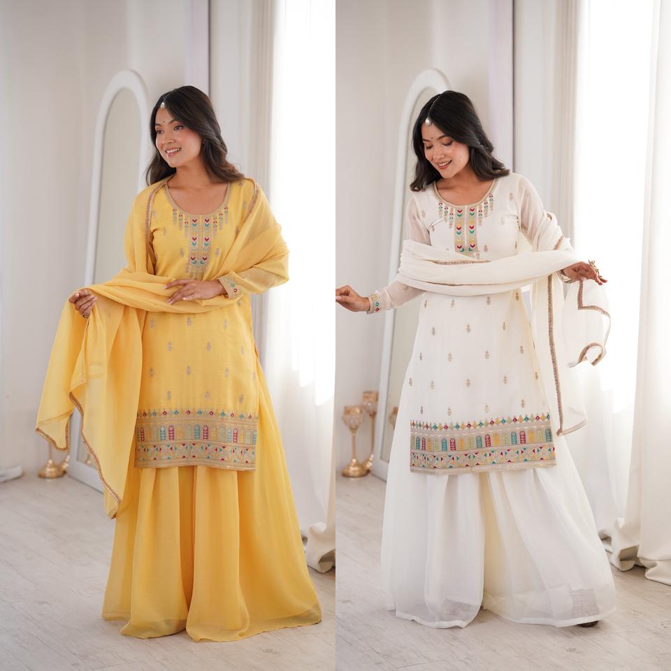 ชุดเสื้อผ้าซัลวาร์ผ้าไหมเนื้อนุ่มกรุบกรอบพร้อมผ้าคลุมไหล่สำเร็จรูปสำหรับผู้หญิงในโอกาสวันดิวาลี ทำจากวัสดุรีไซเคิล ป้องกันแสงแดด