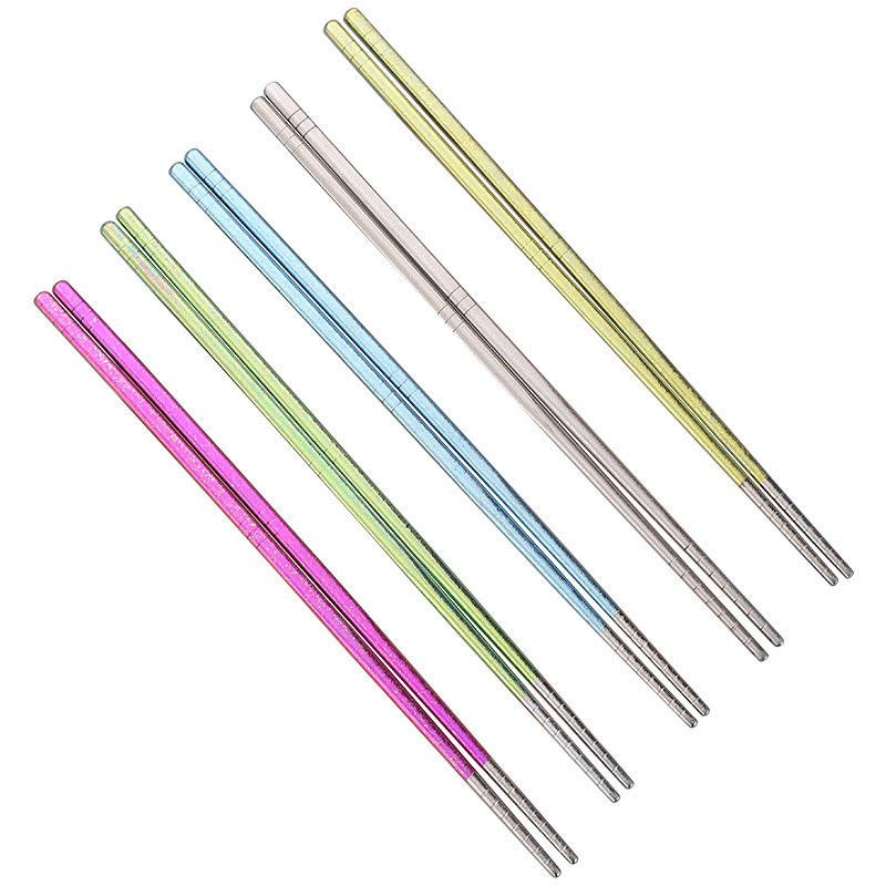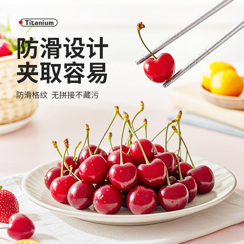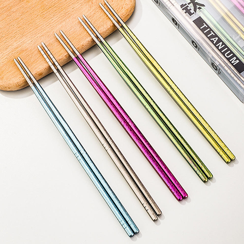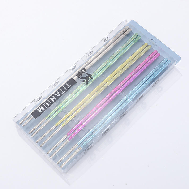 ตะเกียบไทเทเนียมบริสุทธิ์ทรงกลมสีทึบต้านเชื้อแบคทีเรียทนความร้อนช้อนส้อมสำหรับเดินทางสำหรับใช้ในบ้านและกลางแจ้ง