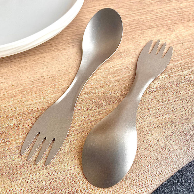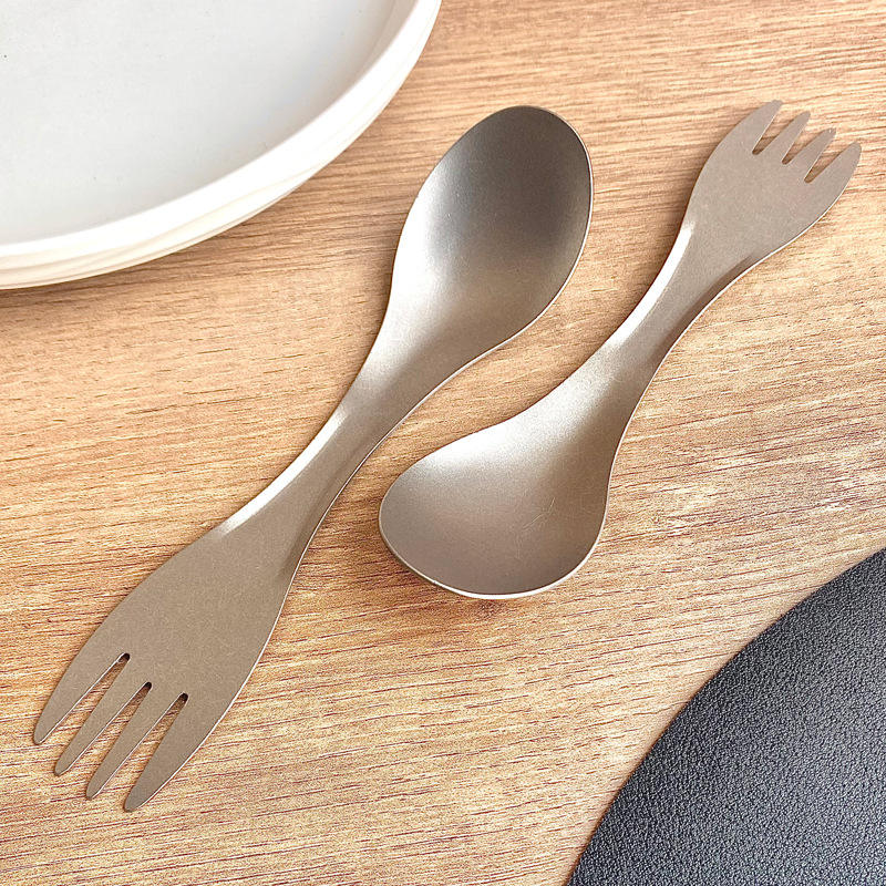 Pure Titanium Double Headed Spoon Fork Oval Portable Camping Utensil For Adults And Students Ti003