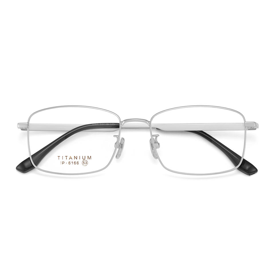 กรอบแว่นตาไทเทเนียมแท้ ทรงสี่เหลี่ยมเต็มกรอบ เลนส์เรซิ่นป้องกันรังสียูวี สำหรับทุกเพศ ผลิตที่ตานหยาง หมายเลขสินค้า 6166