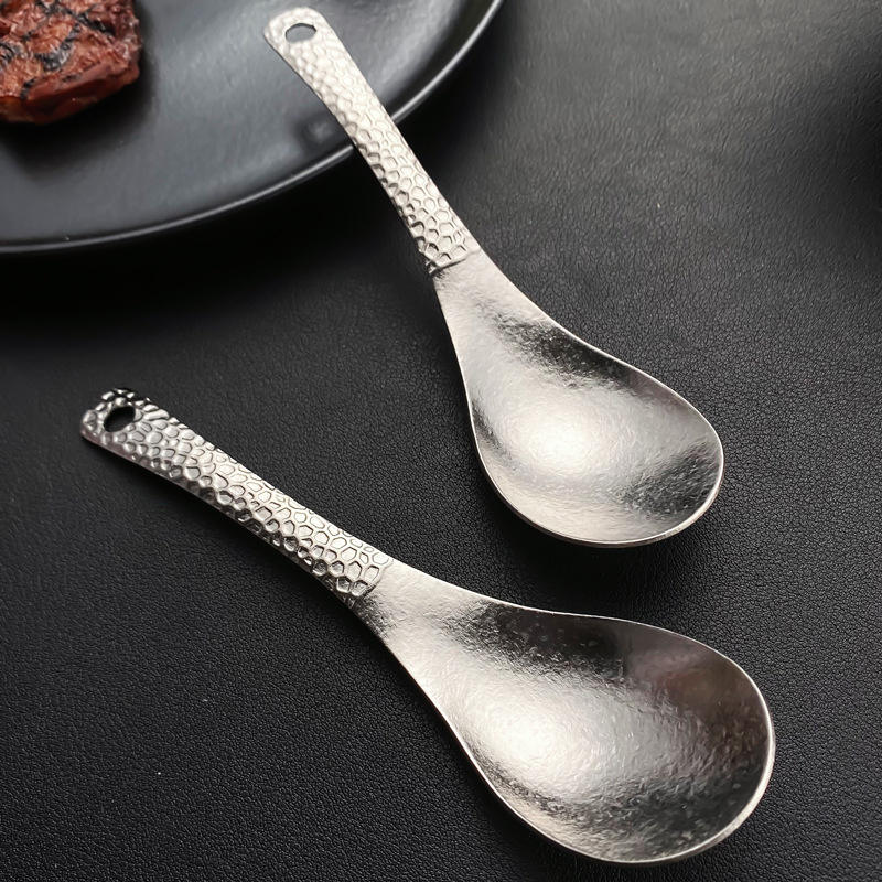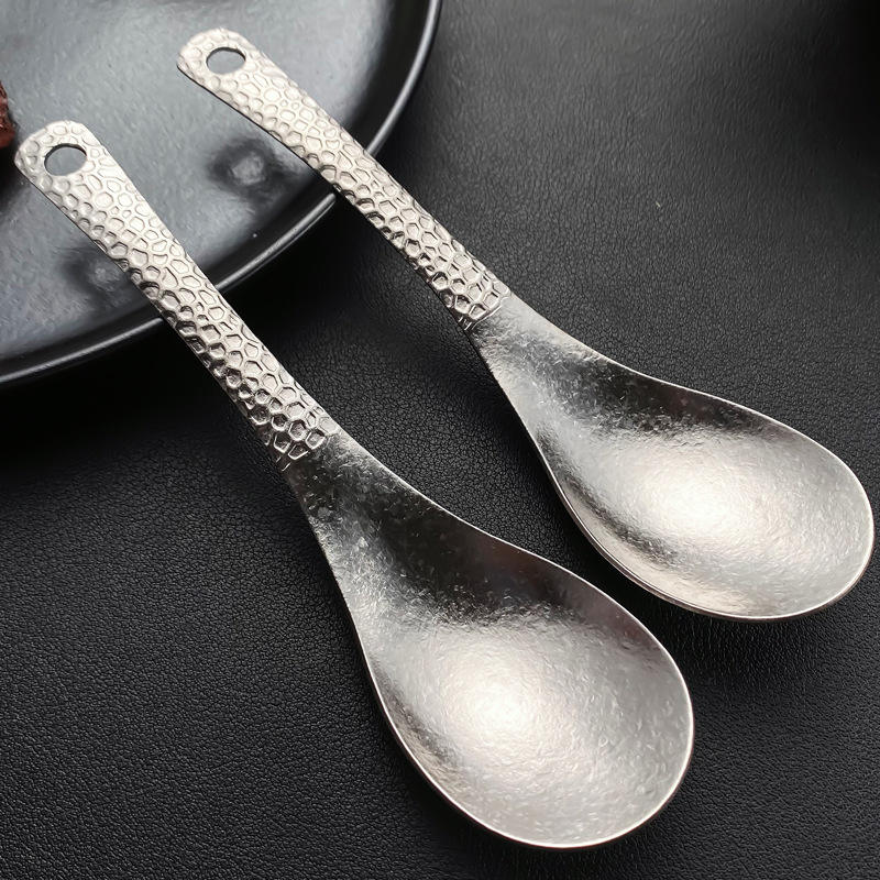ช้อนไทเทเนียมแท้ลายดอกน้ำแข็ง ช้อนเสิร์ฟลายตอกแบบสร้างสรรค์ สำหรับร้านอาหารและใช้ในบ้าน ช้อนซุปข้าวสไตล์ราชวงศ์