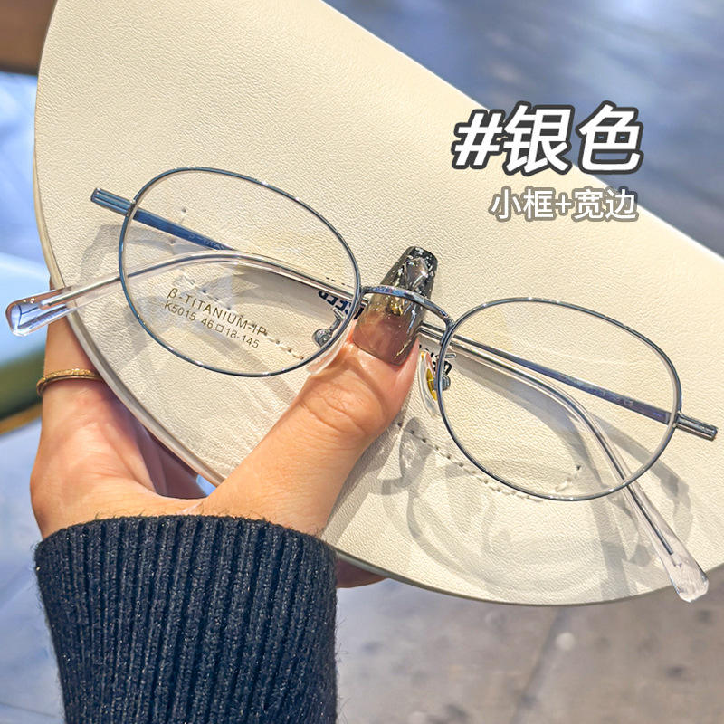 กรอบแว่นตาไทเทเนียมบริสุทธิ์รูปไข่ 5015 สำหรับผู้หญิงหน้าเล็ก น้ำหนักเบา เลนส์พลาสติกเต็มกรอบ ผลิตที่ตานหยาง