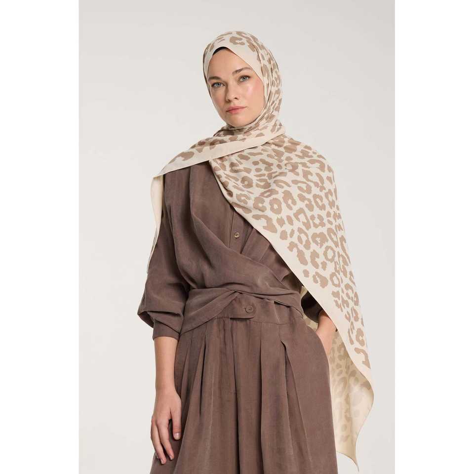 ผ้าพันคอขนมิงค์สีเบจลายเสือดาวโทนสีบริสุทธิ์ เครื่องประดับเสื้อผ้ามุสลิมแบบดั้งเดิม-ไซส์ M