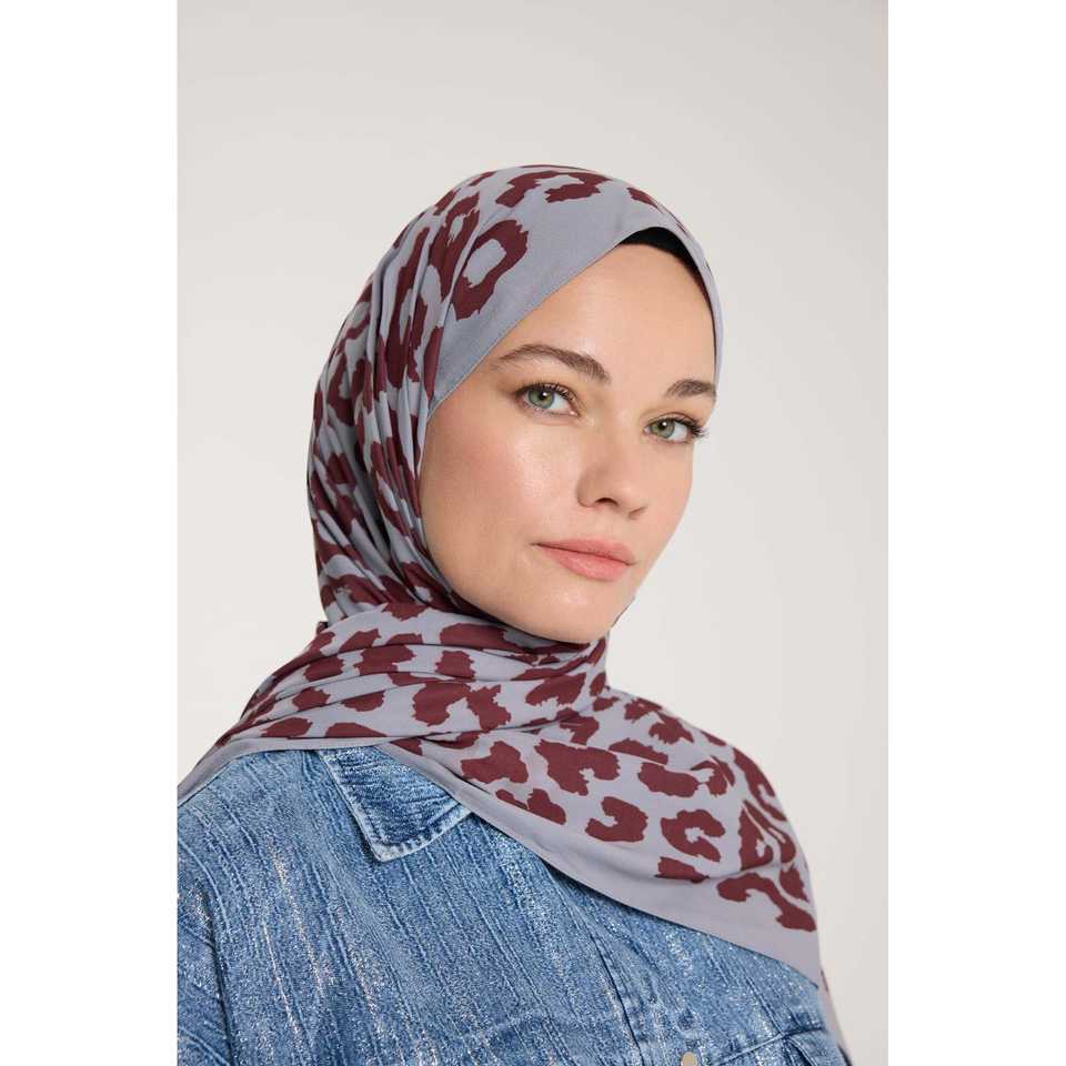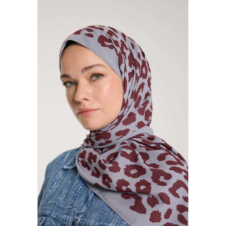 ผ้าพันคอไหมพิมพ์ลายเสือดาว สีเงินเบอร์กันดี ผ้าไหมแท้ 100% สำหรับผู้หญิง ใช้งานได้หลากหลาย พิมพ์ลายดิจิทัล