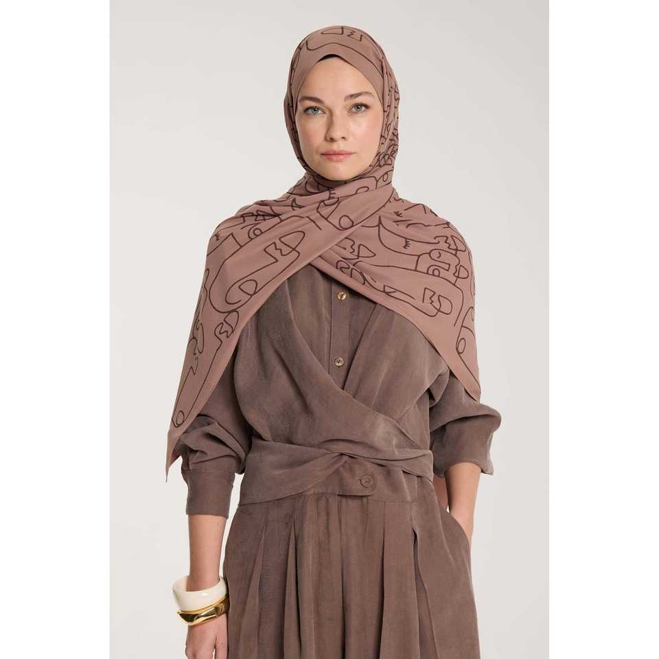 ผ้าพันคอไหมพิวร์โทนสีมิลค์คอฟฟี่พร้อมลวดลายขอบผ้า