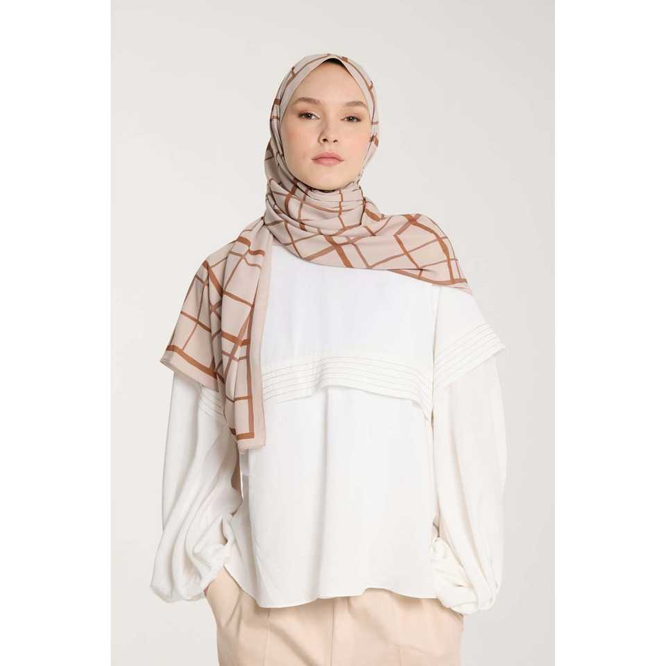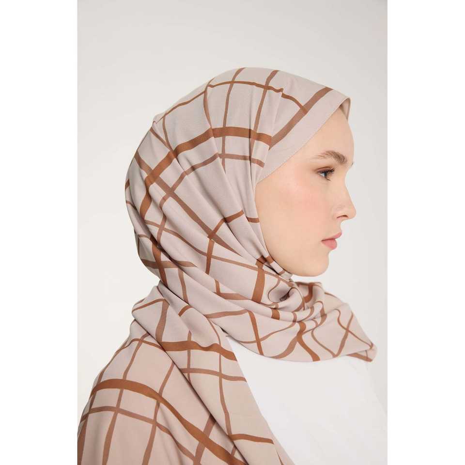 ผ้าคลุมศีรษะมุสลิมแบบดั้งเดิม ลายสี่เหลี่ยม สีเฮเซลนัท ดีไซน์หรูหรา สำหรับตกแต่งเสื้อผ้า