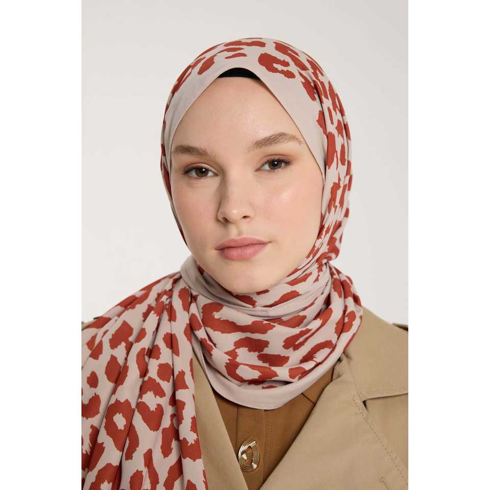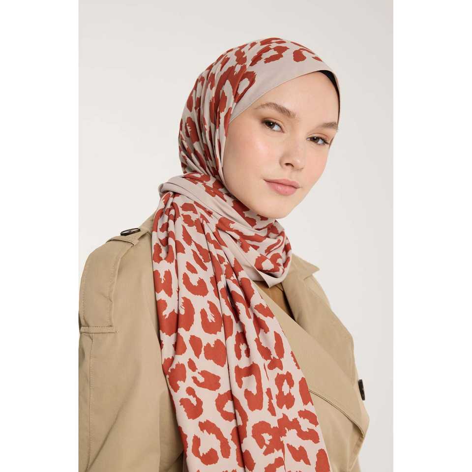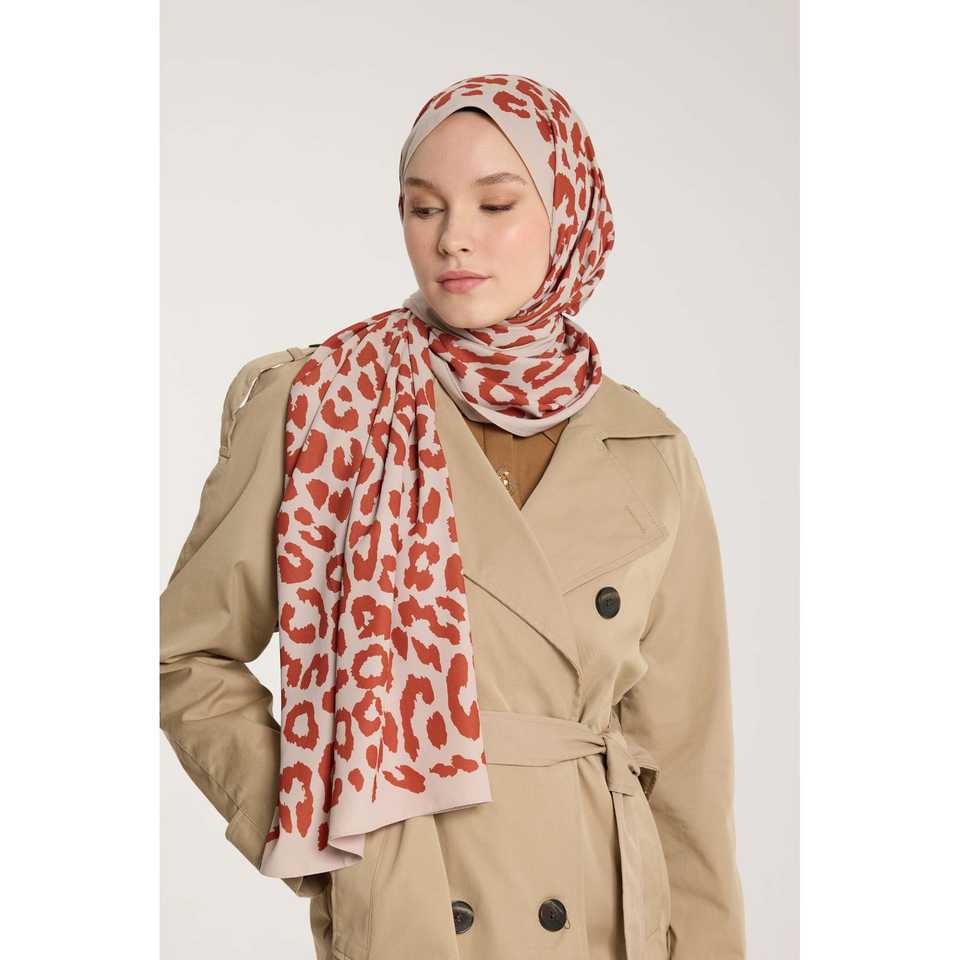 ผ้าพันคอผ้าซาตินลายเสือดาวสีแดงอมน้ำตาลสไตล์วินเทจโทนสีบริสุทธิ์ ลายจุดสีเทอร์ราคอตต้า สำหรับฤดูใบไม้ผลิ ผลิตจากผ้าซาตินโพลีเอสเตอร์