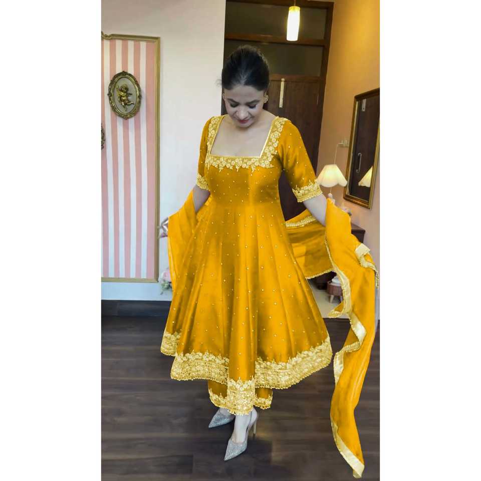 Dupatta และกางเกงชุดปาร์ตี้ของผู้หญิงชุดปาร์ตี้2XL ขนาดพิเศษผ้าไหม vichitra บริสุทธิ์