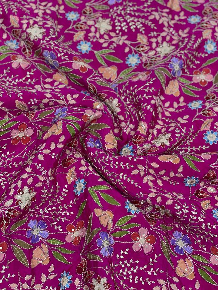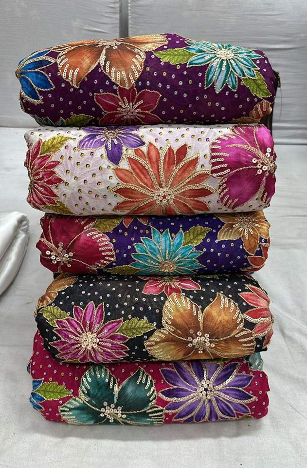 ผ้าเครปบริสุทธิ์พิมพ์ลายแฟนซีธรรมชาติสำหรับฤดูหนาวเสื้อผ้าอินเดียและปากีสถานสำหรับ lahenga kurti
