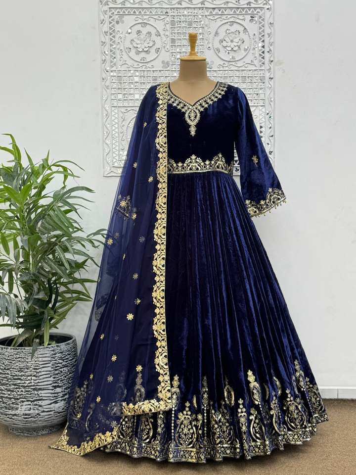 ชุดผ้ากำมะหยี่เนื้อหนาบริสุทธิ์พร้อมงานปักแฟนซีและงานเลื่อมรวมถึงกางเกงและ dupatta เหมาะสำหรับงานแต่งงานและงานเลี้ยงรับรองในฤดูหนาว