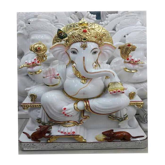 Makrana หินอ่อนสีขาวบริสุทธิ์พระพิฆเนศ Ji ประติมากรรมทำด้วยมือและขัดเงาเพื่อการตกแต่งบ้าน