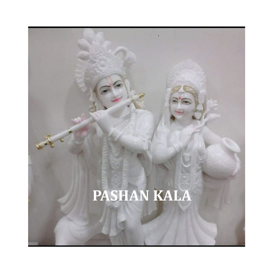 Product Name:Pure White Makrana Marble Radha Krishna Moorti With Marble Flute