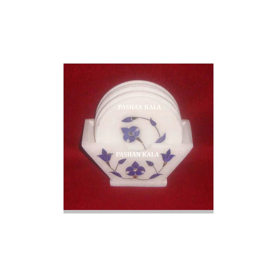 ชุดถาดรองแก้วฝังหินอ่อนสีขาวบริสุทธิ์ลายดอกไม้สีฟ้าสำหรับตกแต่งบ้านและของขวัญวัตถุประสงค์การส่งออกและนำเข้า