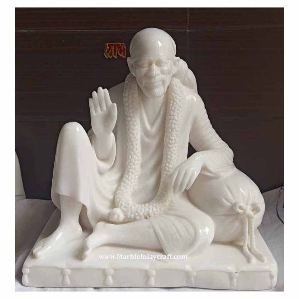 หินอ่อนสีขาวบริสุทธิ์ไสบาบารูปปั้นสำหรับบูชา