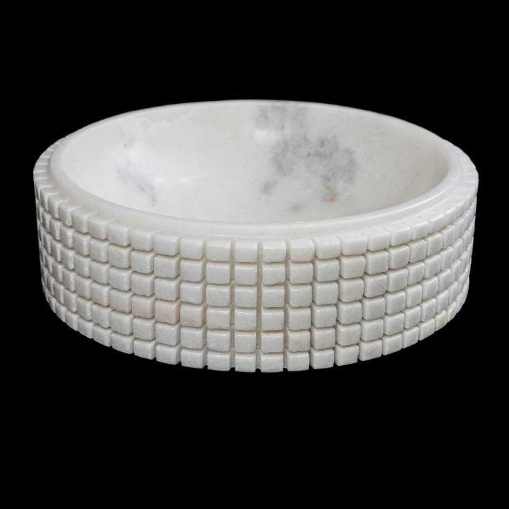 ชามหินอ่อนกลมสีขาวบริสุทธิ์พร้อมฐานไม้ทึบของตกแต่งหรูหรากลางถาดใส่ผลไม้ที่ทันสมัยเน้นในบ้านหรูหรา