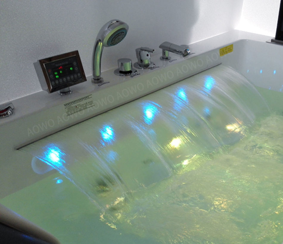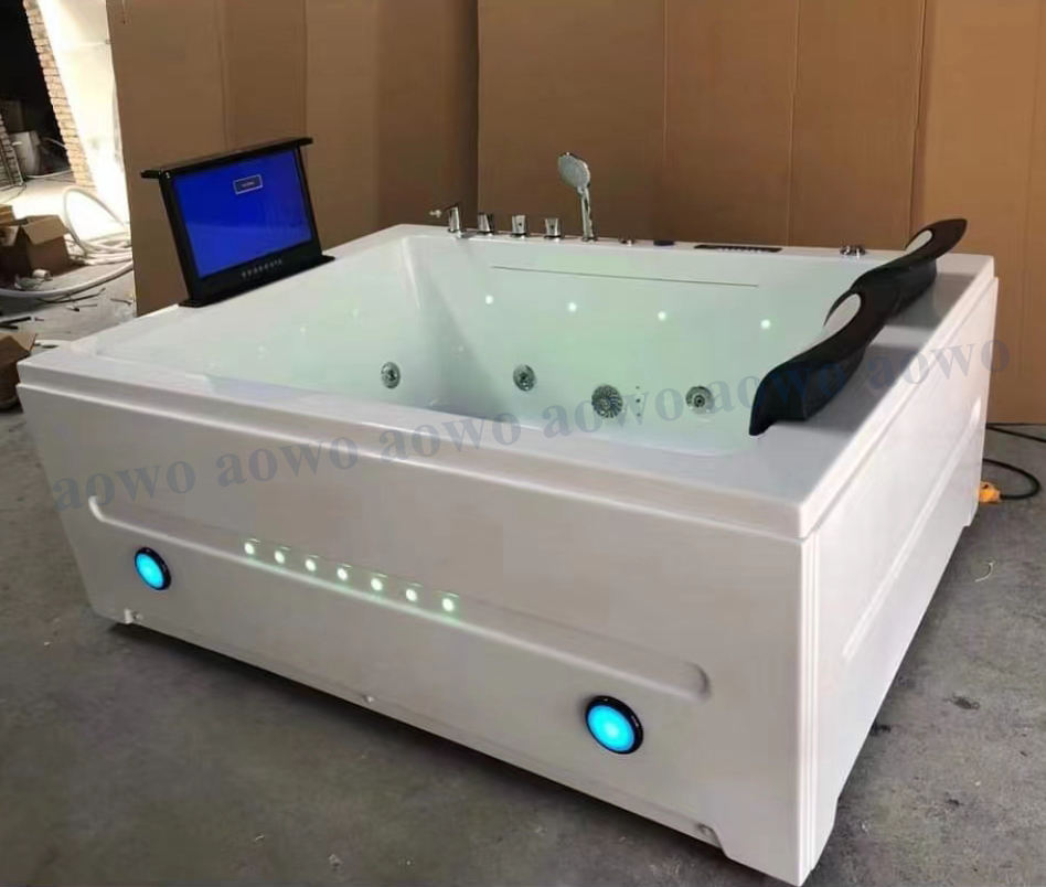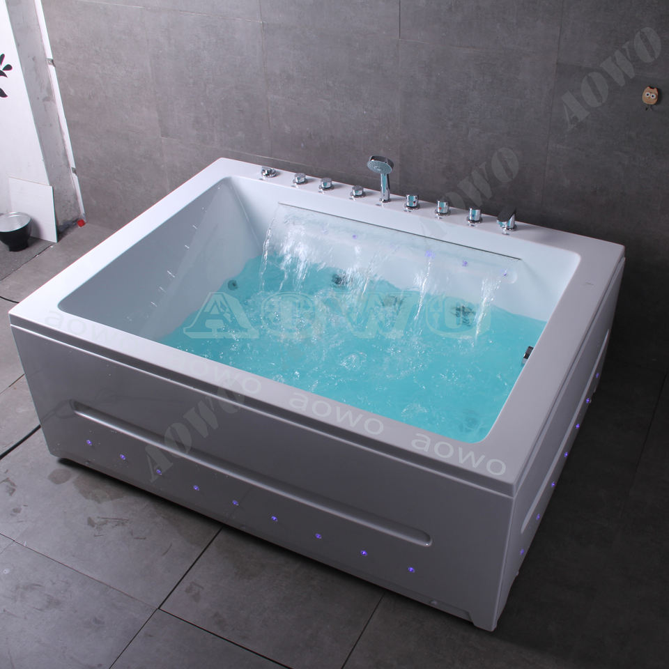 สีขาวบริสุทธิ์สปาอ่างอาบน้ํา 2 คนjacuzzier jettingพลาสติกไฟเบอร์กลาสน้ําตกไฟนวดฝักบัวแบบพกพาและทีวีกันน้ํา