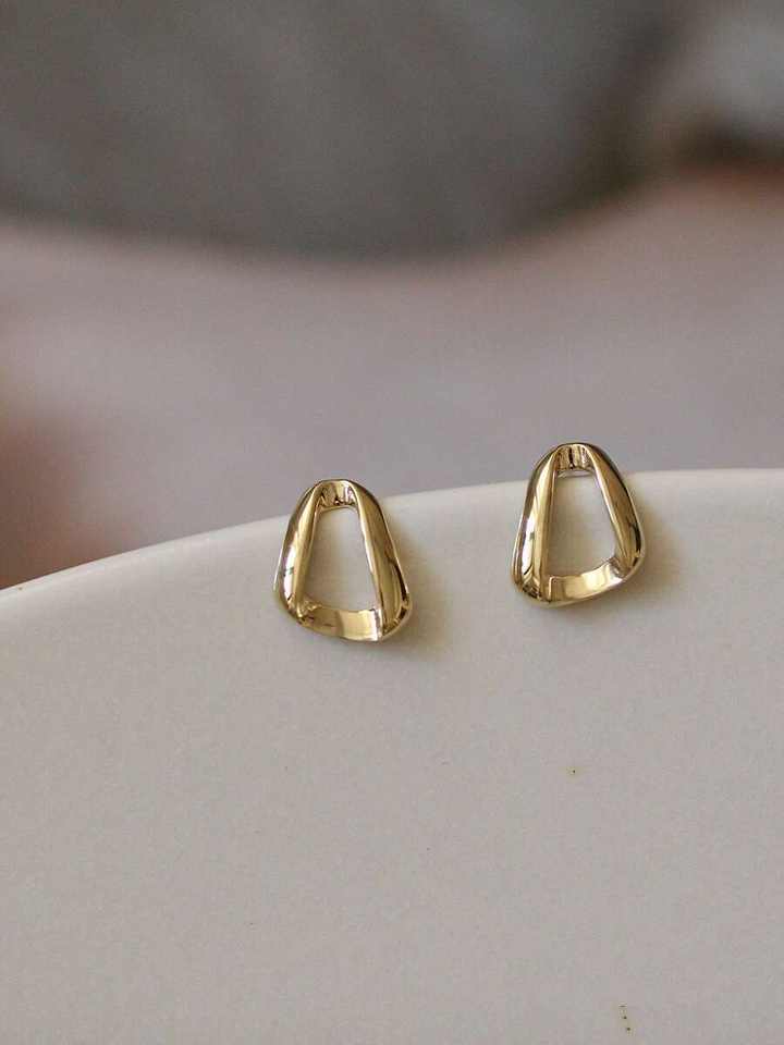 ต่างหูหมุดทอง9K อินเทรนด์มาใหม่2021 Jewelry-KJ438แฟชั่นสามเหลี่ยมสามมิติบริสุทธิ์