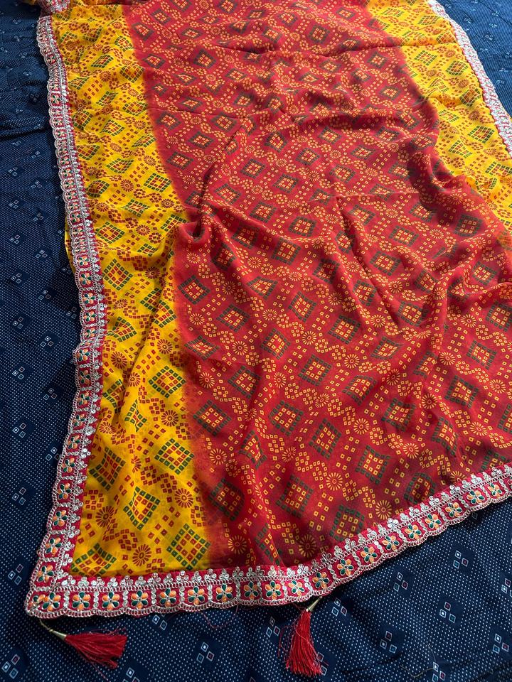 ส่าหรีของผู้หญิงแท้ที่มีขอบลูกไม้แบบตัดและทำจากอินเดีย