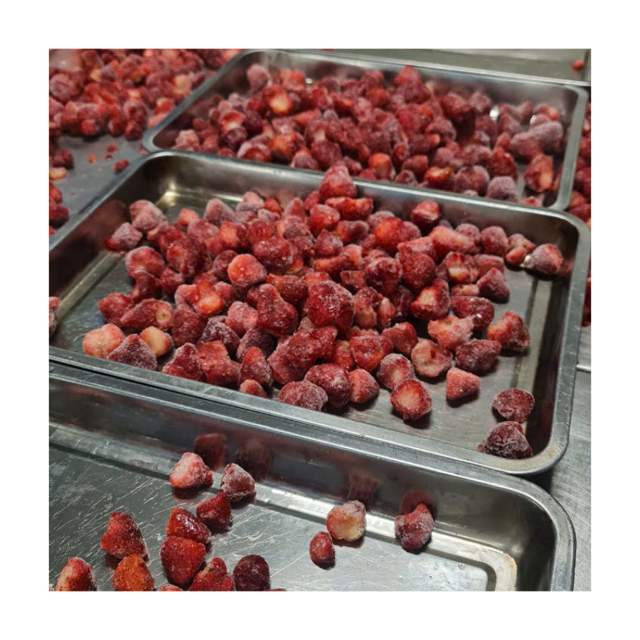 สายการผลิตอาหารแช่แข็งแบบธรรมชาติและบริสุทธิ์สตรอเบอร์รี่แช่แข็งไม่มีสารเติมแต่งที่อุดมไปด้วยวิตามินซีผู้จำหน่ายจากเวียดนามสำหรับอาหารว่างเพื่อสุขภาพและอาหารแช่แข็ง