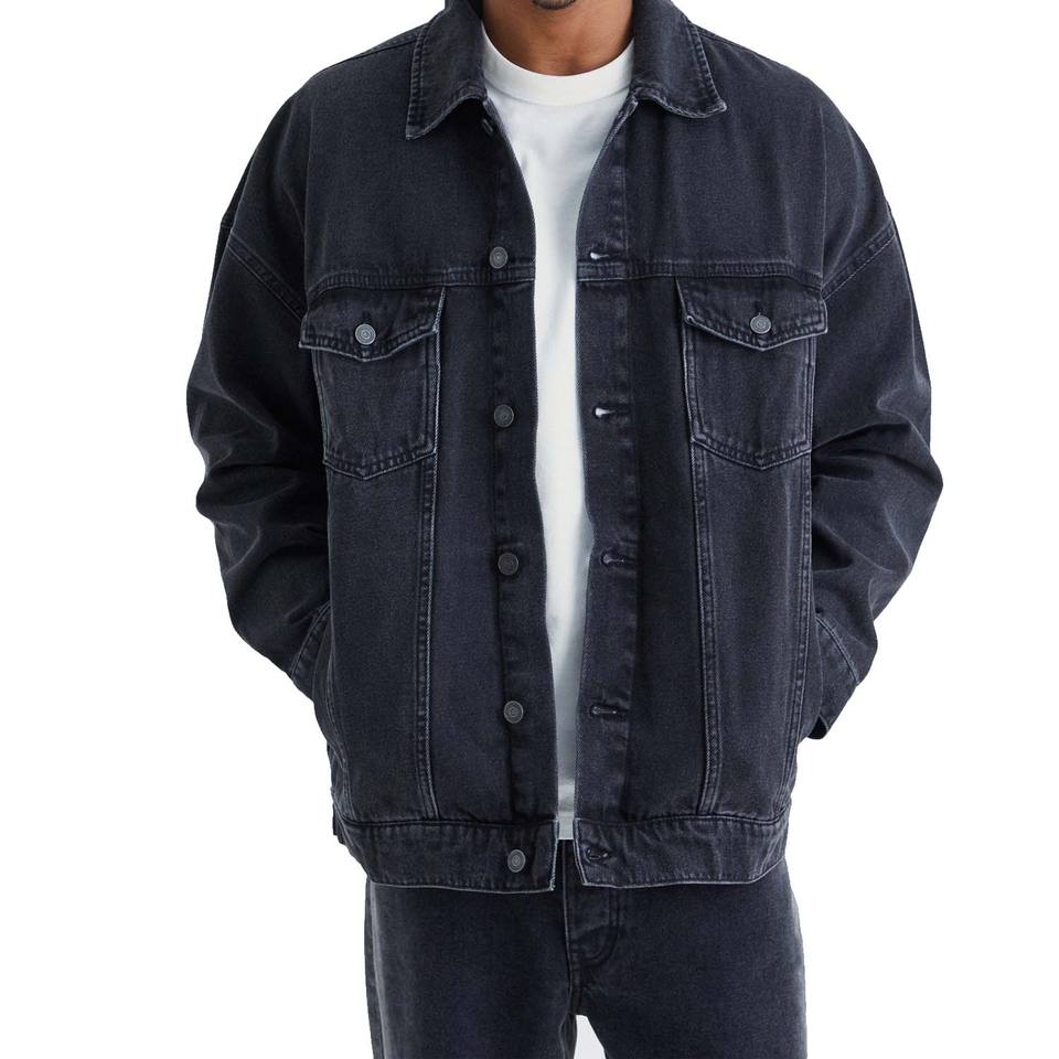 แจ็กเก็ตผ้ายีนส์ผ้าฝ้ายระดับพรีเมี่ยมสีดำบริสุทธิ์ซักได้ระบายอากาศได้สีซีดจาง