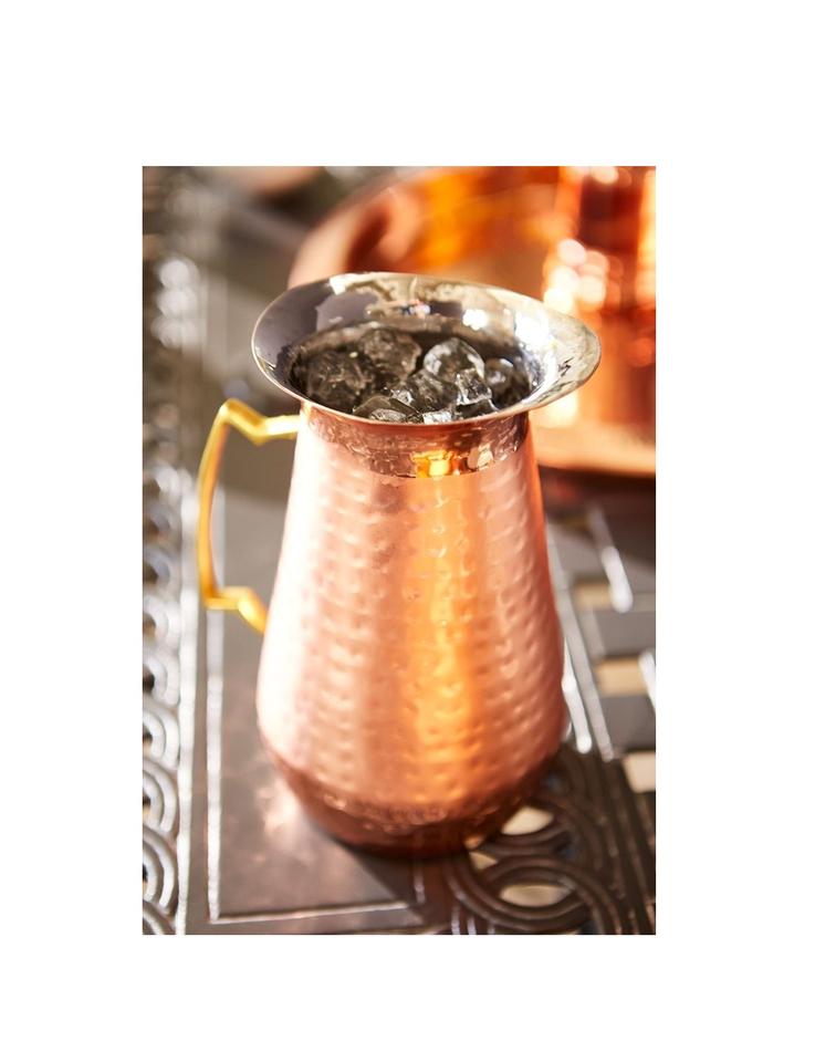 เหยือกทองแดงบริสุทธิ์สำหรับเก็บน้ำที่เป็นมิตรกับสิ่งแวดล้อมพร้อมด้ามจับที่แกะสลักและปากกว้างสำหรับทำความสะอาดและเทได้ง่าย