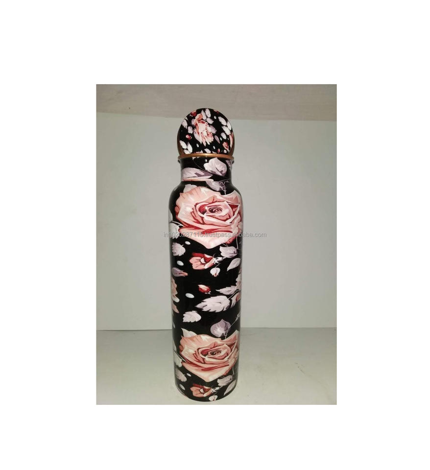 ขวดน้ำทองแดงบริสุทธิ์พร้อมดีไซน์พิมพ์ลายเคลือบลายดอกไม้เหมาะสำหรับเล่นฟิตเนสโยคะให้ความชุ่มชื้นเพื่อสุขภาพ