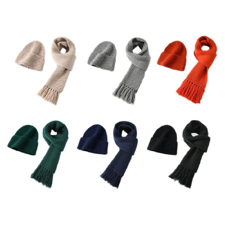 หมวกและผ้าพันคอถักนิตติ้งหนาสำหรับชายและหญิงยอดนิยมชุดสองชิ้นพร้อมโลโก้พู่มือสำหรับ meetin ประจำปี