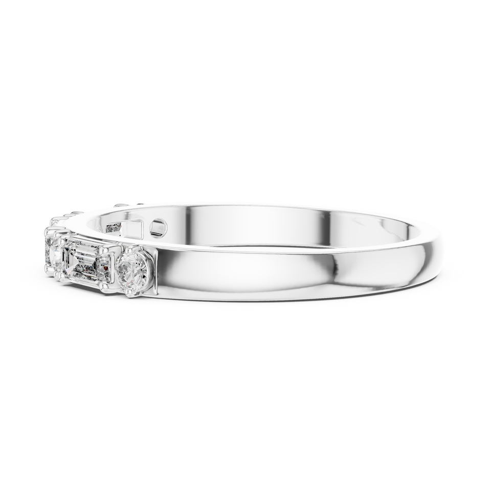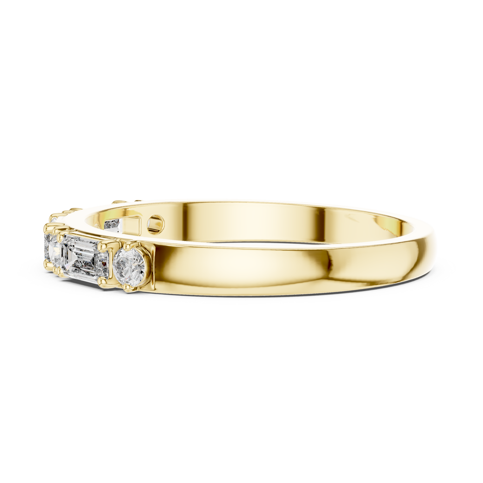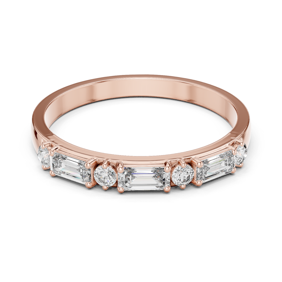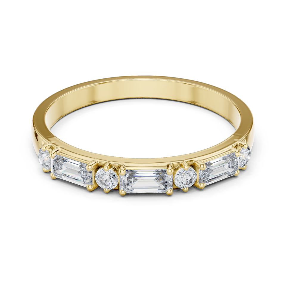 แหวนเพชรทรงบาแกตต์และทรงกลมทองคำแท้ 14K ขนาด 6 เครื่องประดับหรูหราสำหรับผู้หญิง