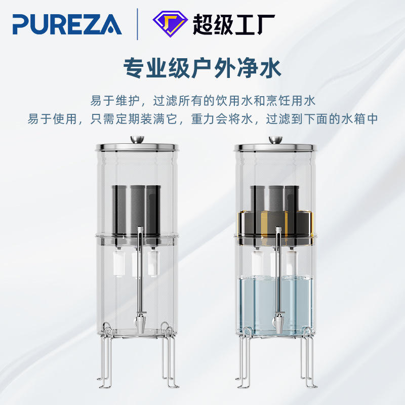 ถังกรองน้ำสแตนเลส Pureza ขนาด 2.9 แกลลอน แบบกรองแรงโน้มถ่วง สำหรับตั้งแคมป์ กิจกรรมกลางแจ้ง และใช้ในบ้าน