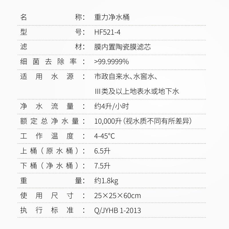 เครื่องกรองน้ำเพียวฟาสท์ กราวิตี้ 25x25x60 ซม. ตัวกรองเซรามิกความจุขนาดใหญ่สำหรับครัวเรือน ใช้กรองน้ำดื่มโดยตรง