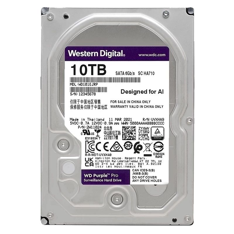 Purple 2TB Internal HDD 3.5 Inch 64MB Cache SATA III 5400RPM 601-700MB/s Read Speed Desktop Use