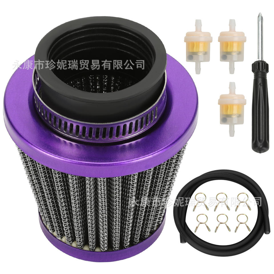 ตัวกรองอากาศทรงกระบอกสีม่วงขนาด 35 มม. สำหรับรถจักรยานยนต์ออฟโรดอะลูมิเนียมอะไหล่ทดแทนแบบไหลสูง