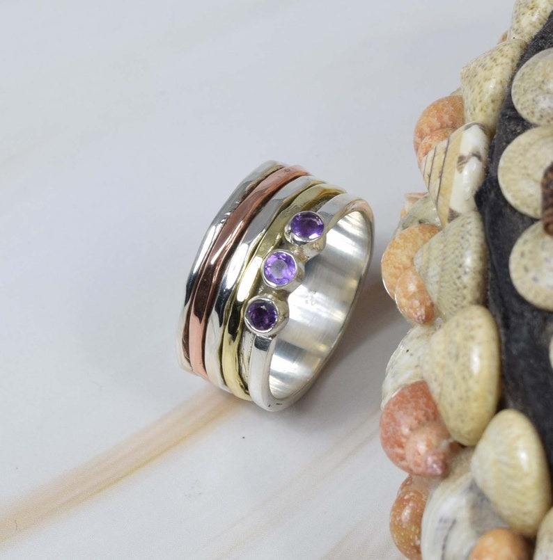 อเมทิสต์สีม่วง 925 แหวนเงินอัญมณีเครื่องประดับทําด้วยมือเดือนกุมภาพันธ์ Birthstone ลูกแพร์รูปร่างของขวัญคริสต์มาส