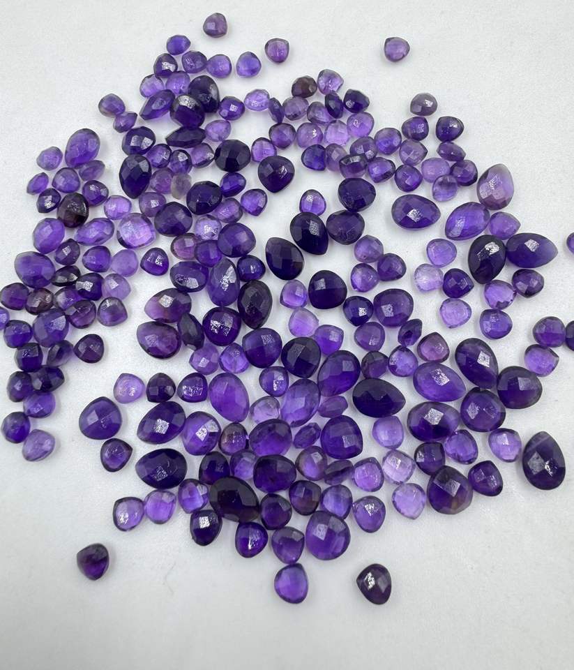 อัญมณีบริโอเลตต์พลอยสีม่วงธรรมชาติคุณภาพสูงตัดอัญมณีแบบหลวมสำหรับทำเครื่องประดับอัญมณีขายส่ง