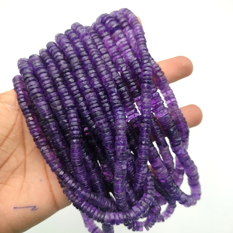ลูกปัดเฮชิสีม่วงเหลี่ยมเพชรพลอย