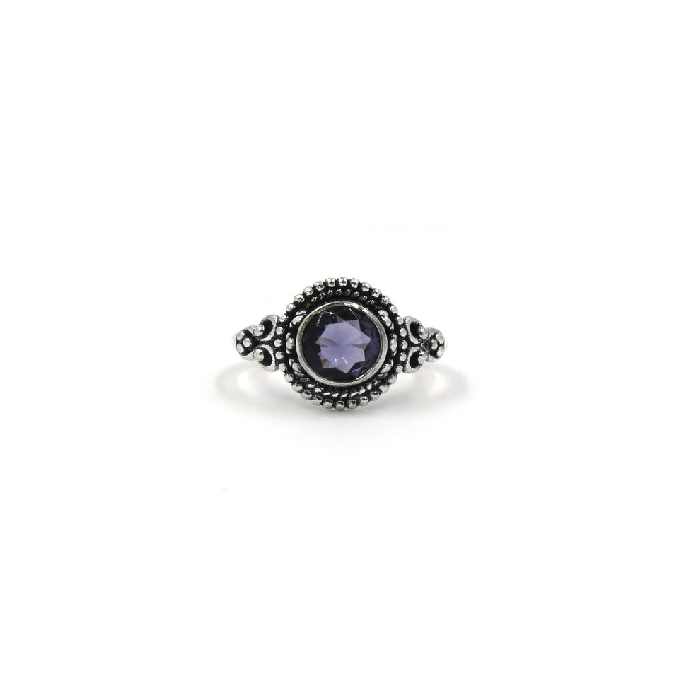 แหวนแต่งงานทำมือสำหรับผู้หญิงและเด็กผู้หญิง สไตล์โบฮีเมียน ชุบเงินออกซิไดซ์ ประดับพลอยอเมทิสต์สีม่วง ขนาด 7 มม. แบบฝังขอบ งานใหม่