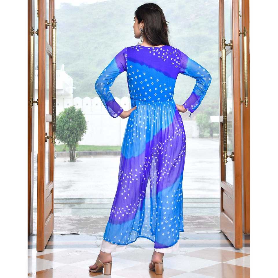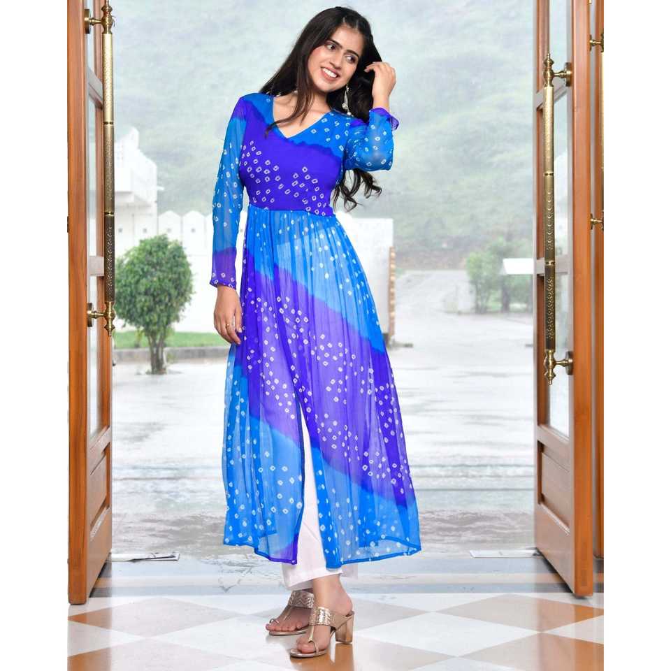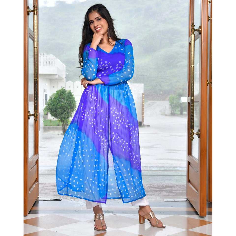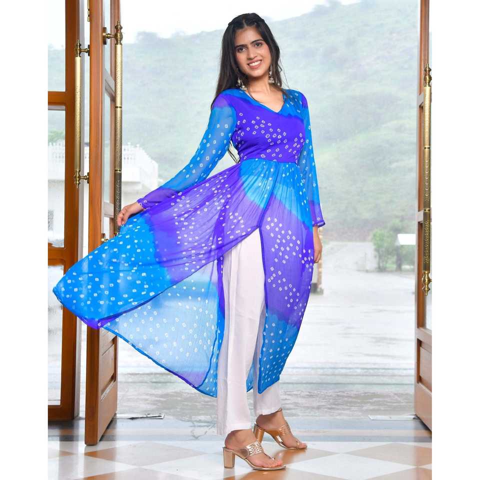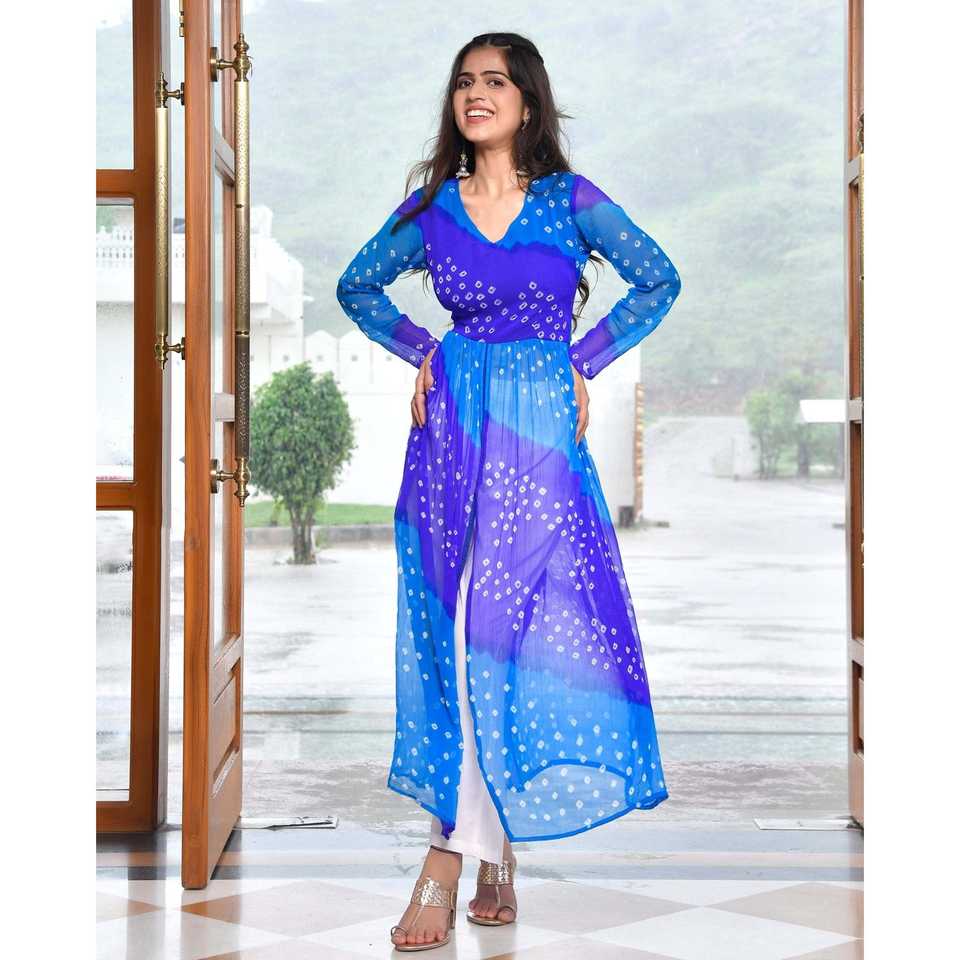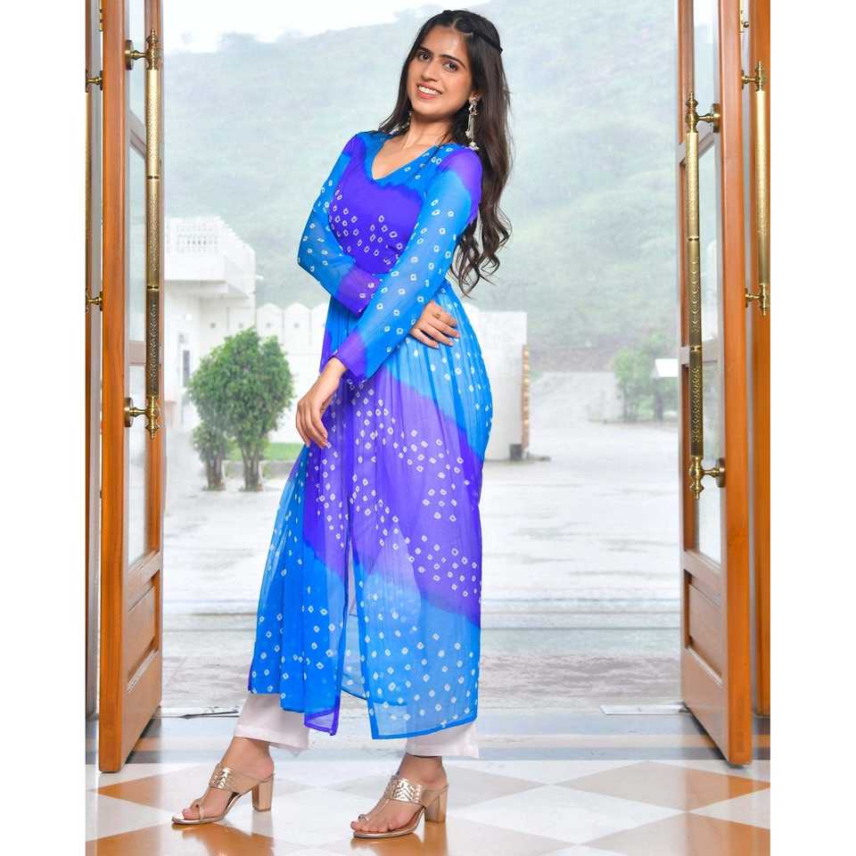 ชุดคุรตะผ้าชีฟองพิมพ์ลายดิจิตอลสีฟ้า ไซส์ XS