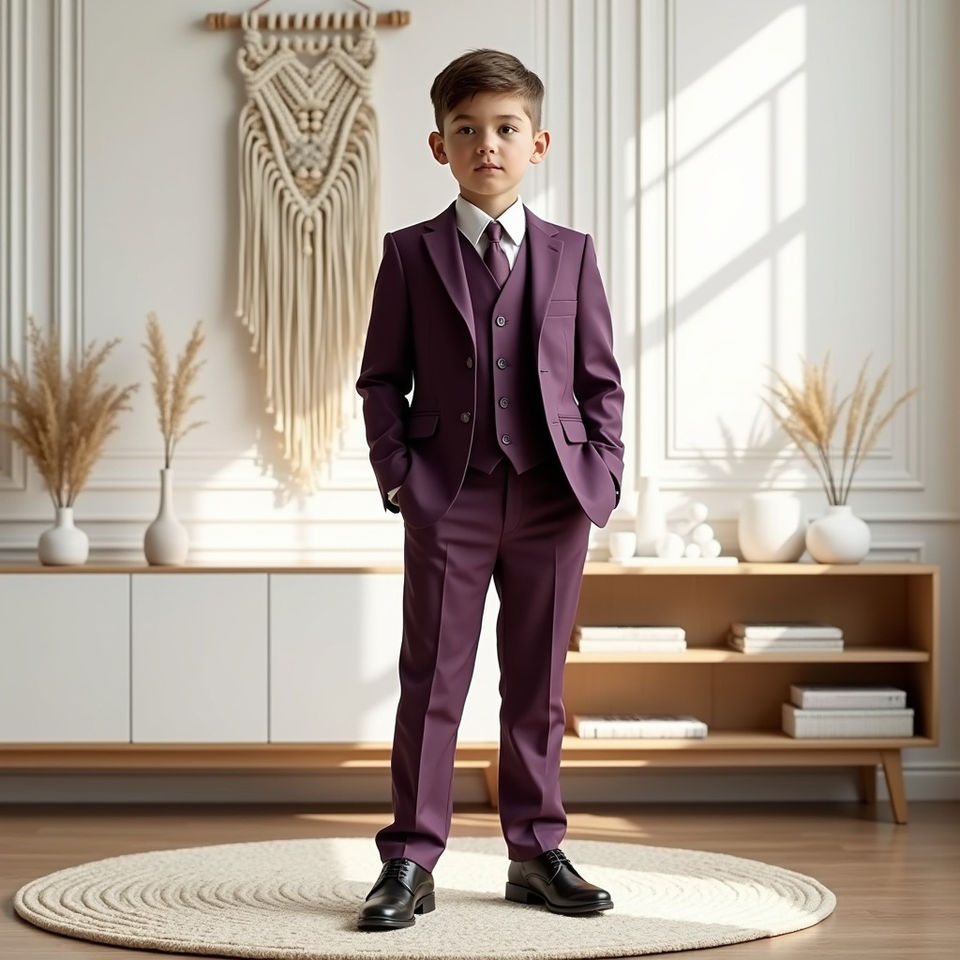 ชุดสูทสำหรับเด็กผู้ชายสีม่วงสำหรับงานแต่งงานเสื้อผ้างานเลี้ยงวันเกิดชุดทางการสำหรับเด็กชุดสำหรับถือแหวนทรงสลิมฟิต