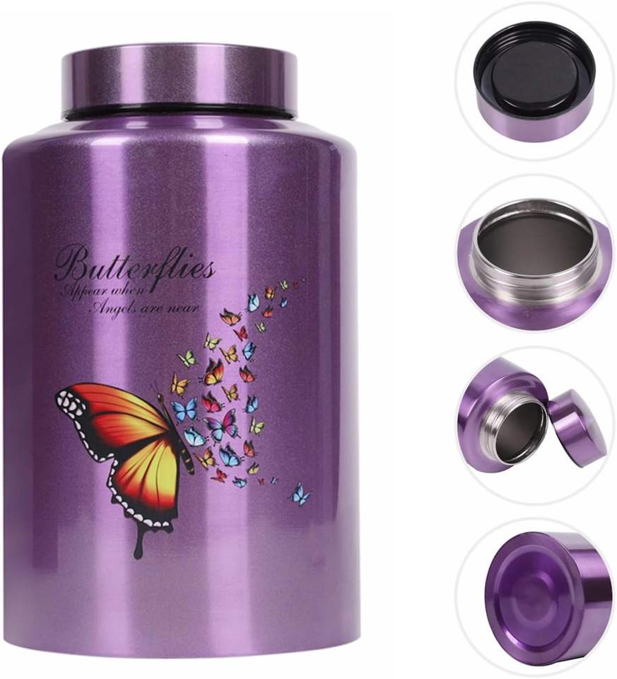 โกศรูปผีเสื้อสีม่วงสำหรับใส่เถ้ากระดูกแม่ พร้อมถุงกำมะหยี่ โกศตกแต่งสำหรับใส่เถ้ากระดูกผู้ใหญ่หญิง โกศเผาศพ