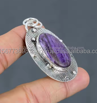 จี้ Charoite สีม่วง925สเตอร์ลิงเงินธรรมชาติจี้ขนาดใหญ่ทำด้วยมือเครื่องประดับจี้รูปไข่ของขวัญสำหรับคริสต์มาส