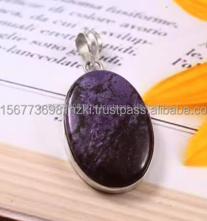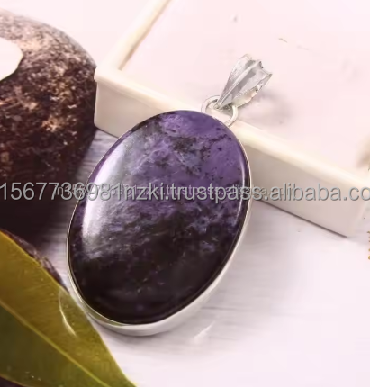 จี้ Charoite สีม่วง925สเตอร์ลิงเงินธรรมชาติจี้ขนาดใหญ่ทำด้วยมือเครื่องประดับจี้รูปไข่ของขวัญสำหรับคริสต์มาส