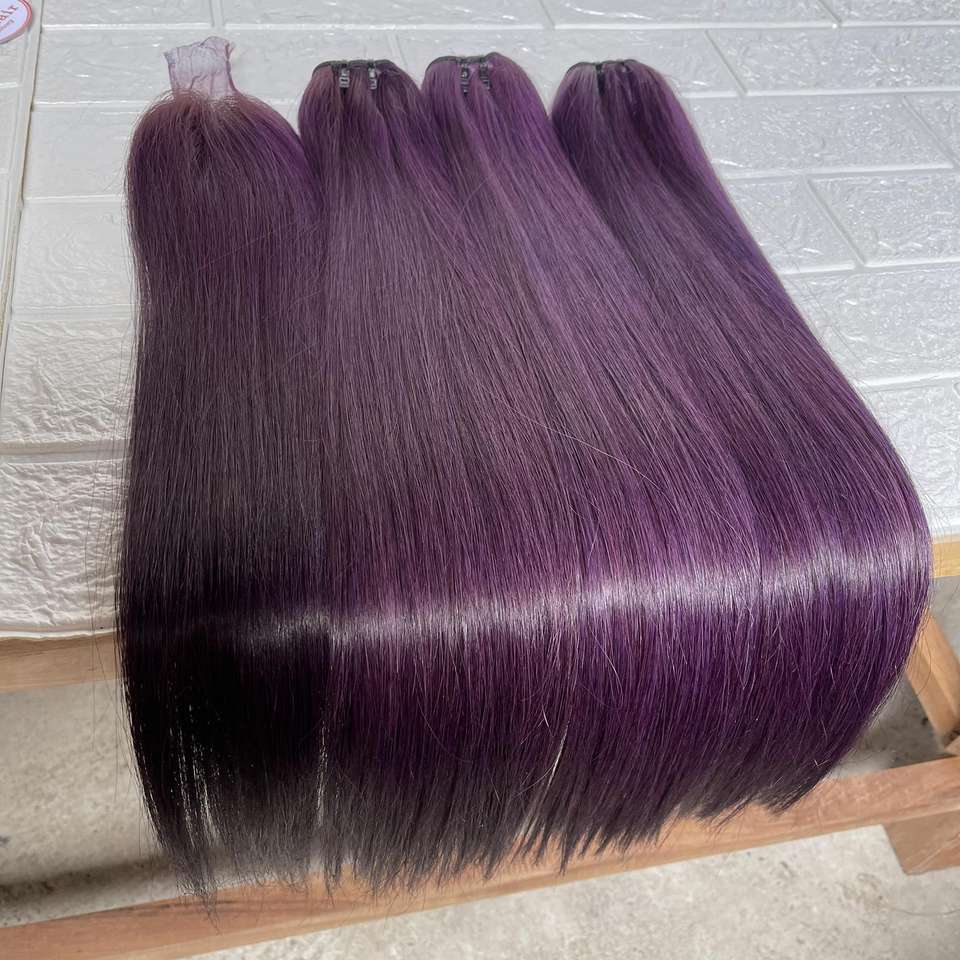 วิกผมแท้จากเวียดนามสำหรับผู้หญิงผิวดำมัดผมตรงลายกระดูกสีม่วง