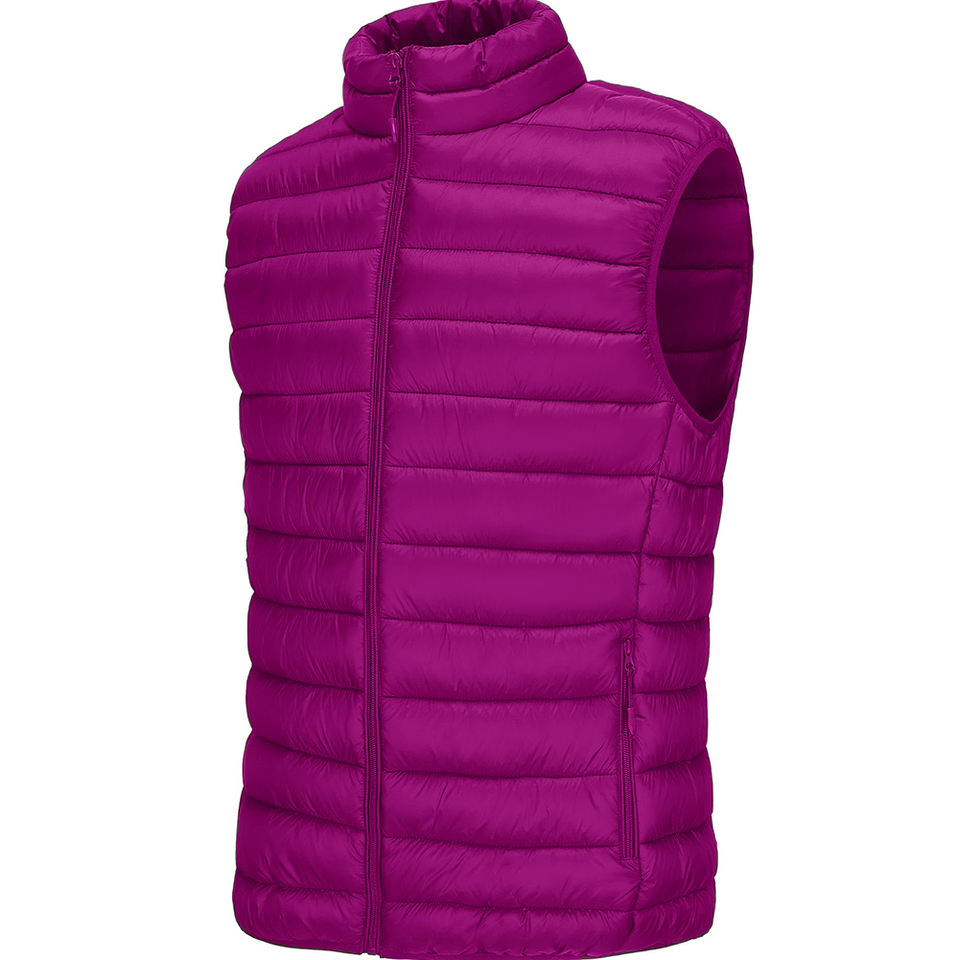 ออกแบบโลโก้สีม่วงตามสั่ง เสื้อแจ็คเก็ตพัฟเฟอร์แบบไม่มีแขน ระบายอากาศ น้ำหนักเบา สำหรับผู้ชายและผู้หญิง ใส่ในฤดูหนาว บุด้วยขนเป็ด