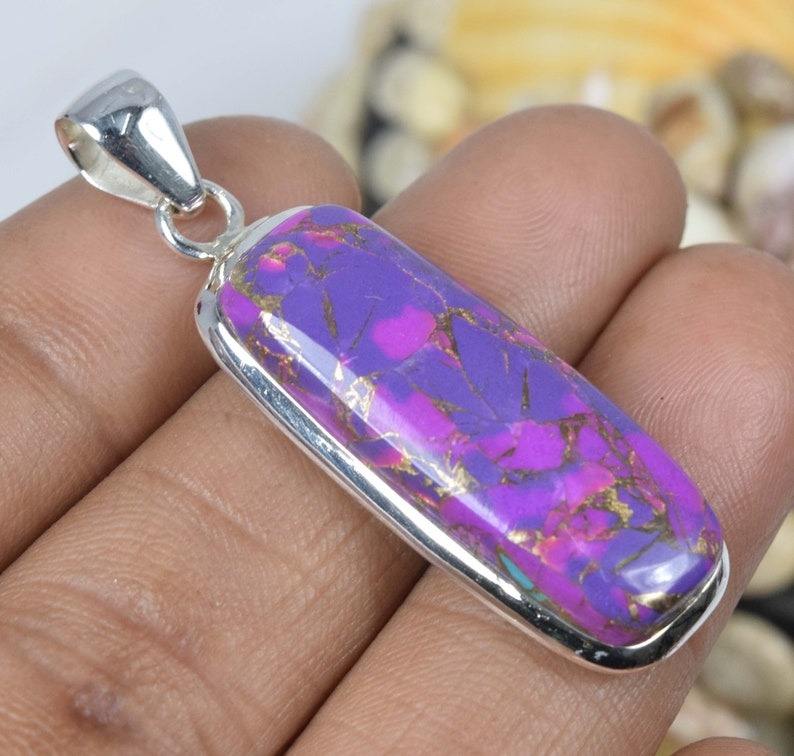 จี้พลอยธรรมชาติทำด้วยมือสีเงินสเตอร์ลิงทำจาก925เทอร์ควอยซ์สีม่วงทองแดงเหมาะเป็นของขวัญสำหรับเธอ