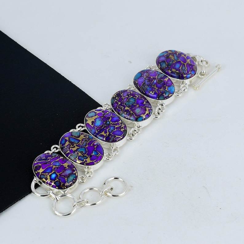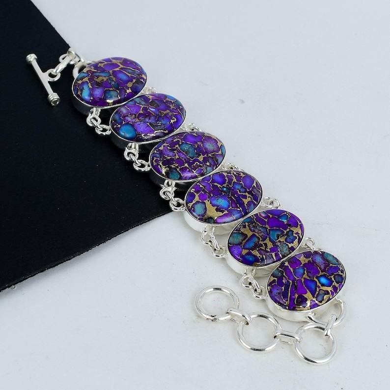 กำไลข้อมือเงินแท้ 925 ประดับพลอยสีม่วงทองแดงและเทอร์ควอยซ์ สไตล์โบฮีเมียน ออกแบบโดยดีไซเนอร์ เหมาะเป็นของขวัญงานแต่งงานสำหรับผู้หญิง