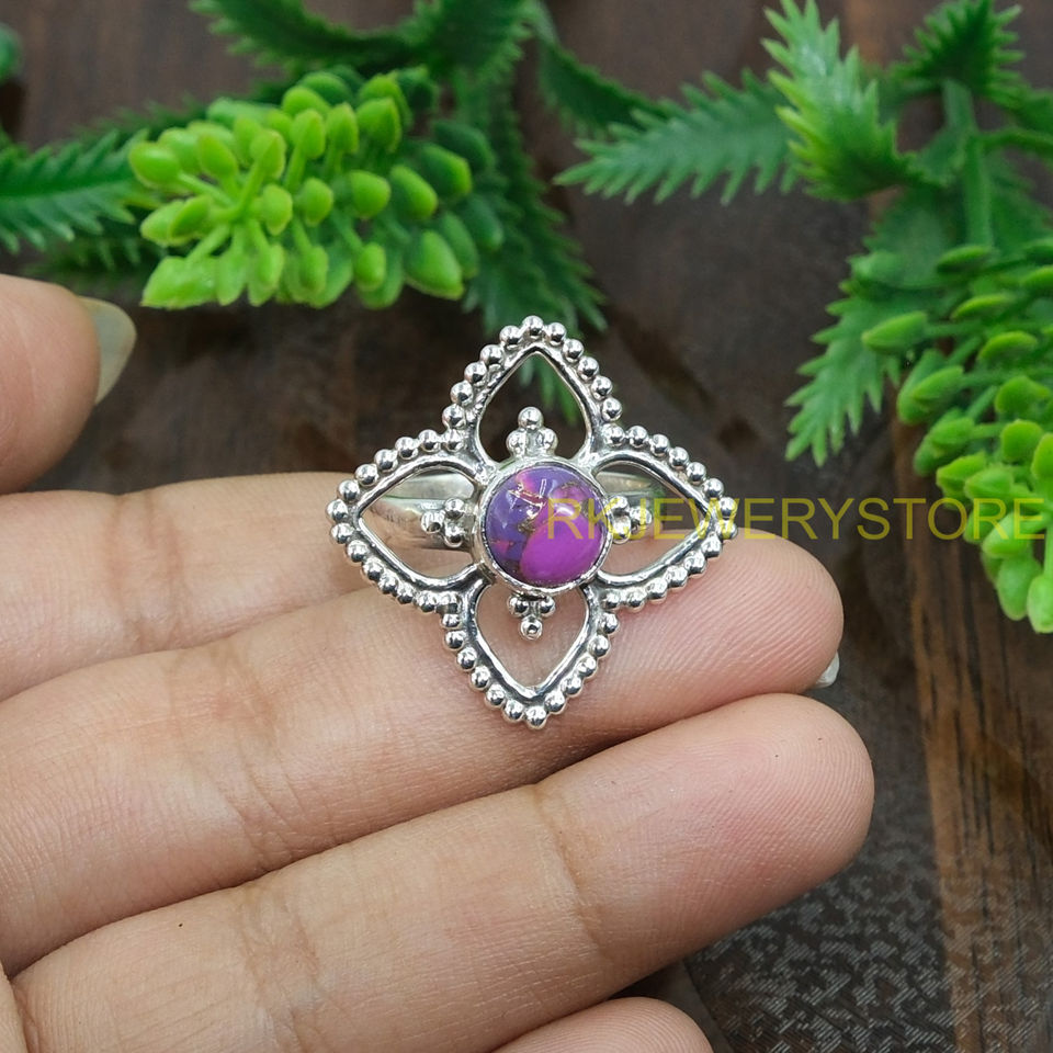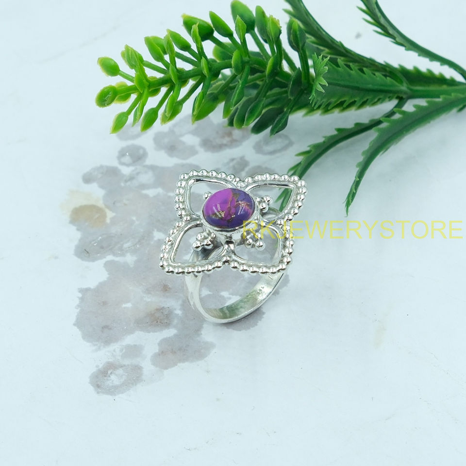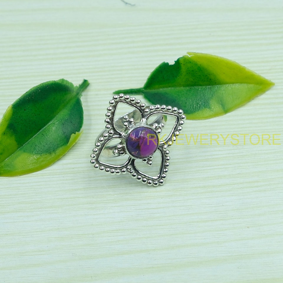 Purple Copper Turquoise Ring 925 Sterling Silver Ring Statement Ring Handmade Design Ring Gemstone Ring Boho Ring Jewelry Gift