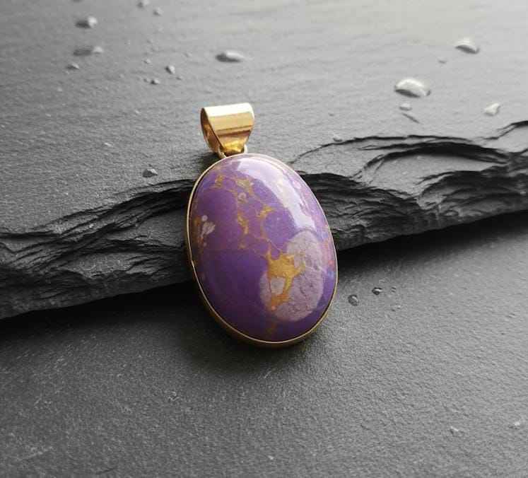 จี้เงินแท้ประดับพลอยเทอร์ควอยซ์สีม่วงทองแดง เงินเยอรมัน พลอยธรรมชาติ ตัวเรือนทำมือ งานฝีมือคลาสสิก สำหรับวันครบรอบ