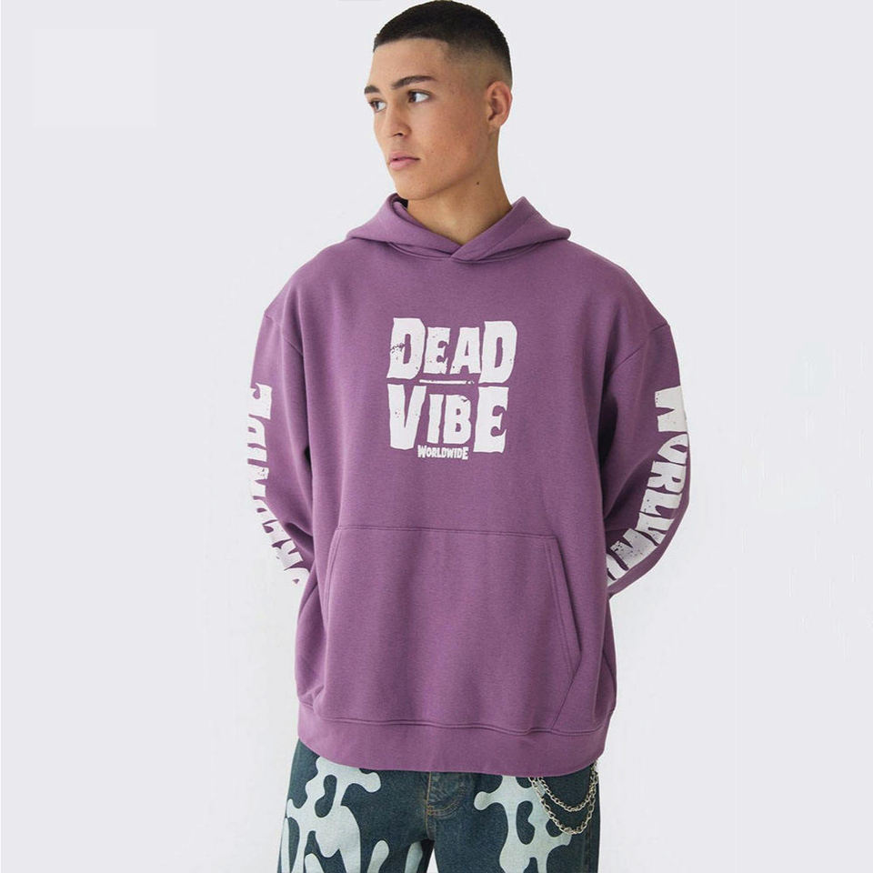 เสื้อมีฮู้ดพิมพ์ลายความทุกข์สีม่วงมีสไตล์ลำลองกีฬาความร้อนที่มีคุณภาพสูงพิมพ์หน้าจอผ้าฝ้ายเฮฟวี่เวทมีฮู้ด500GSM