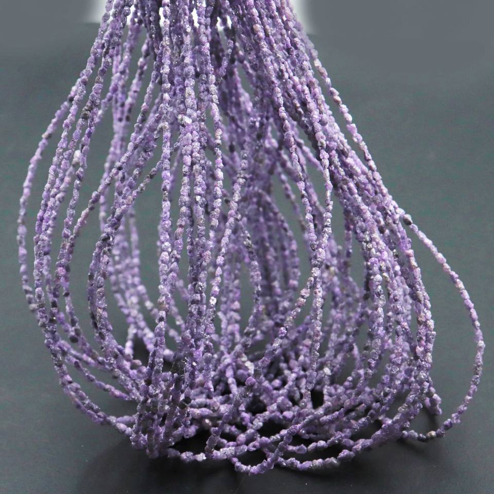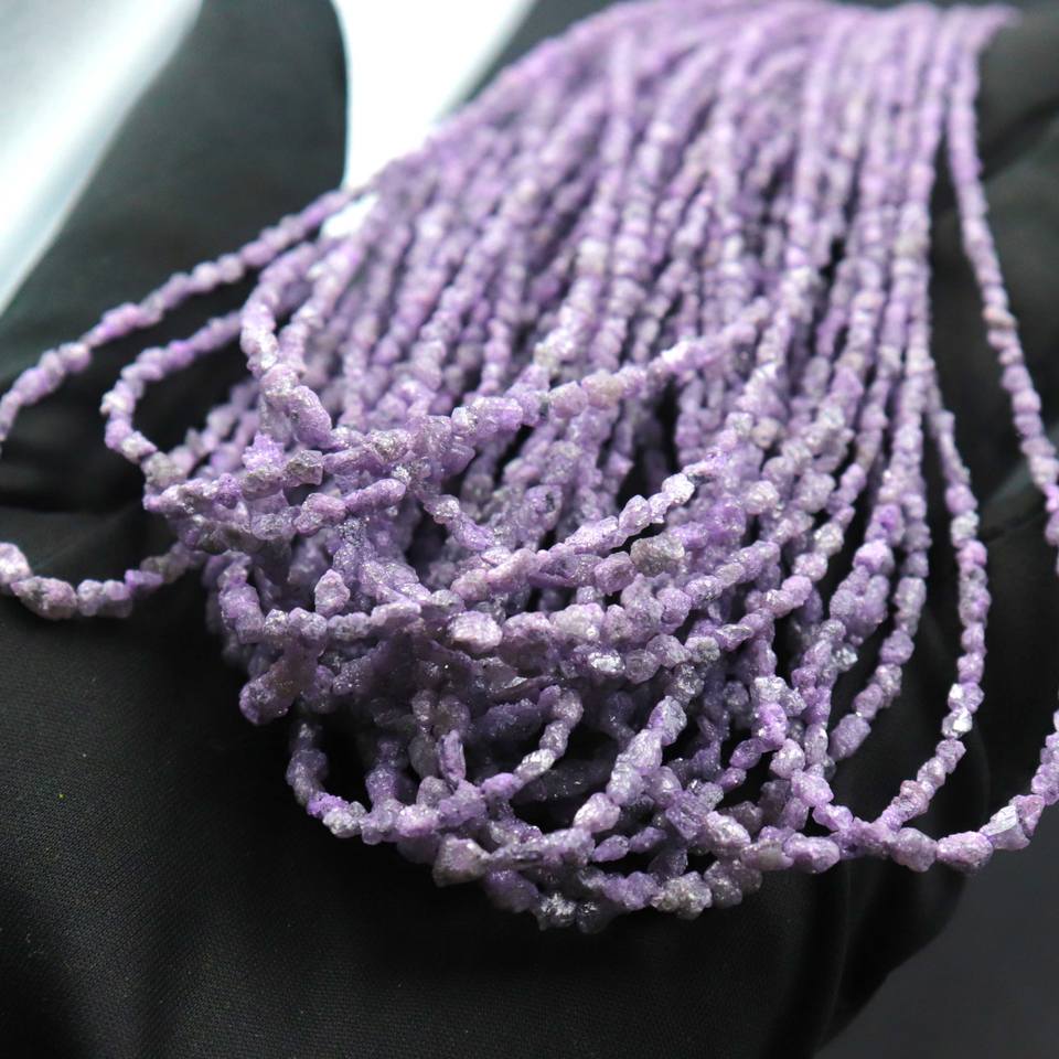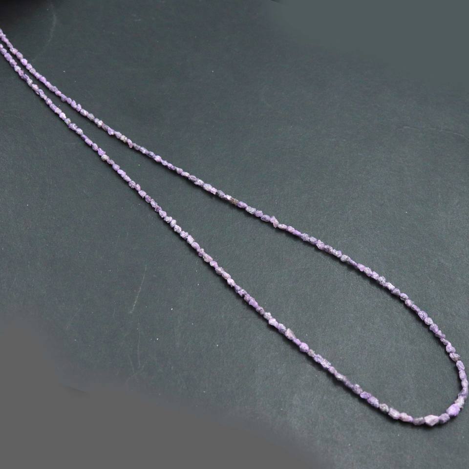 ลูกปัดเพชรดิบสีม่วง ขนาด 2-3 มม. เพชรดิบธรรมชาติ สร้อยคอเม็ดเพชรดิบ รับรองโดย CMA ปราศจากข้อขัดแย้ง เกรดพรีเมียม ความยาว 16 นิ้ว